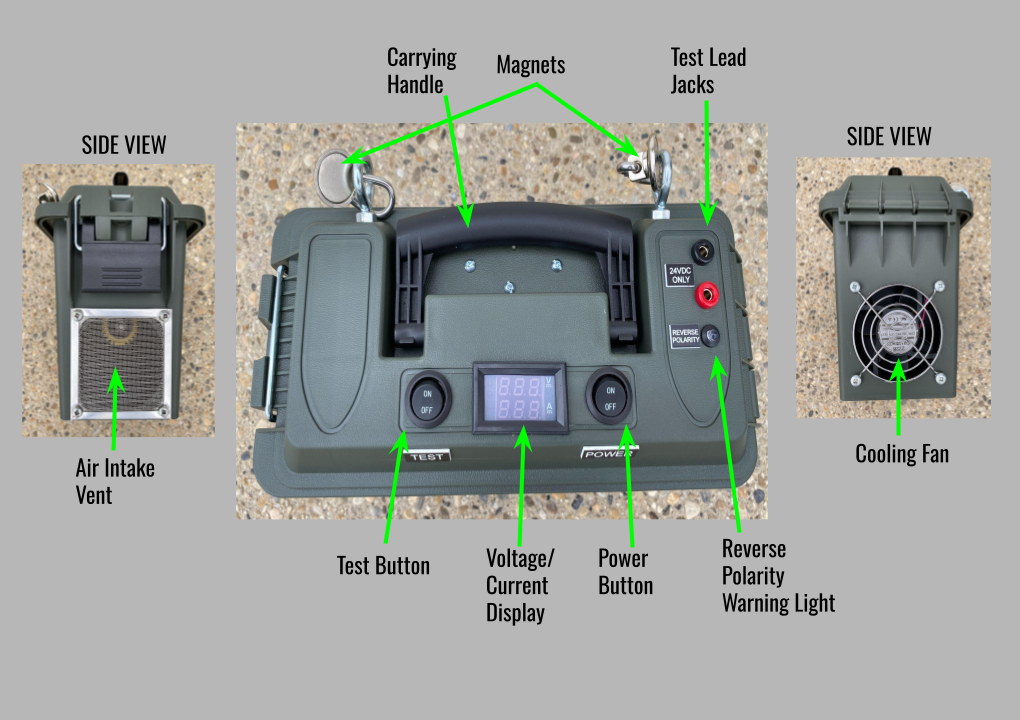 - Shut test button OFF, leave power ON to allow tester to cool for 2 minutes before shutting off power.